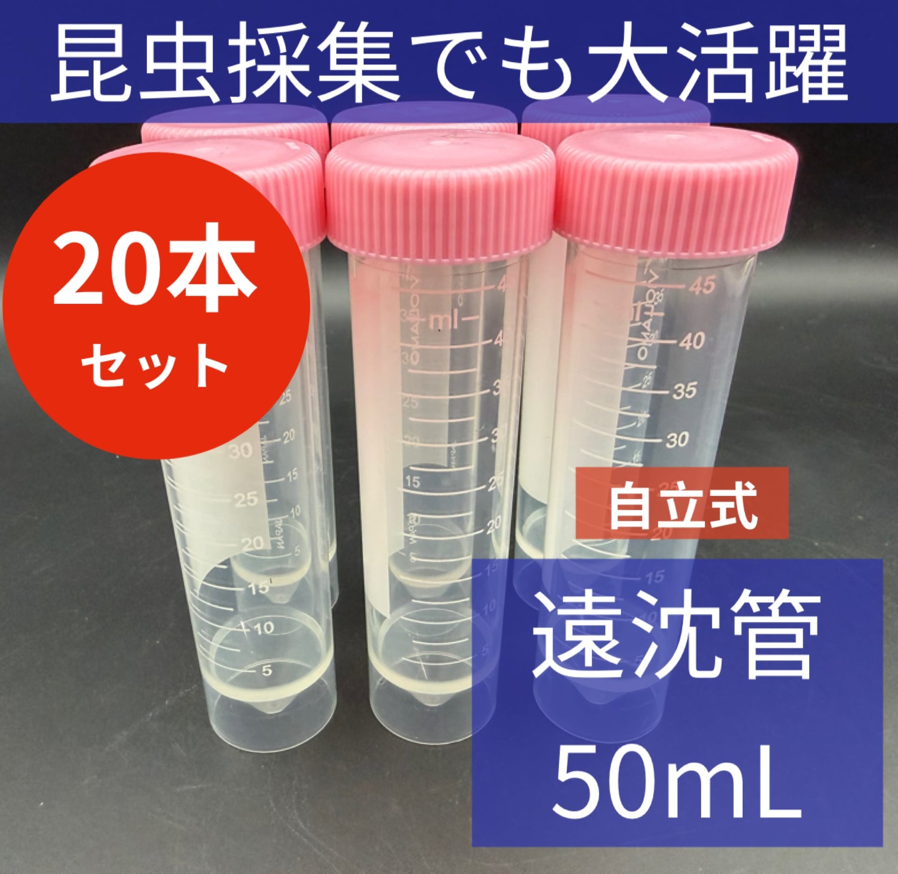 昆虫採集や標本保存にも便利なクリアタイプの遠沈管。