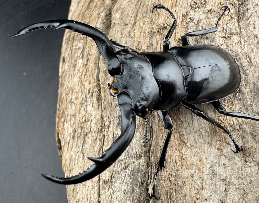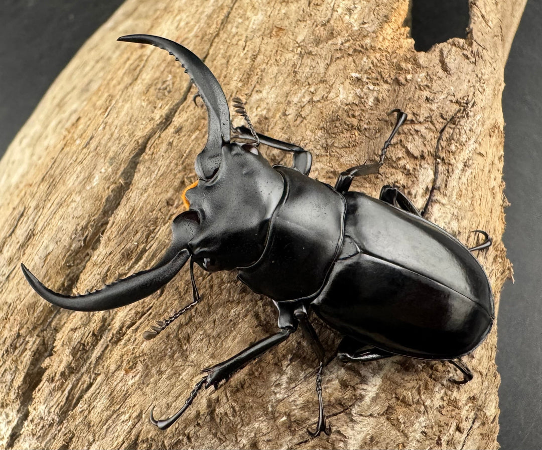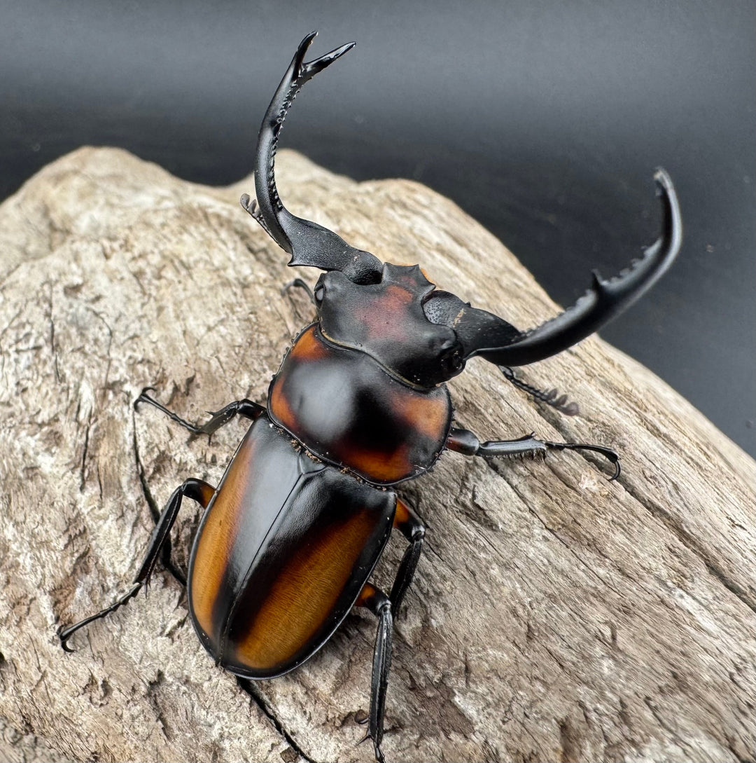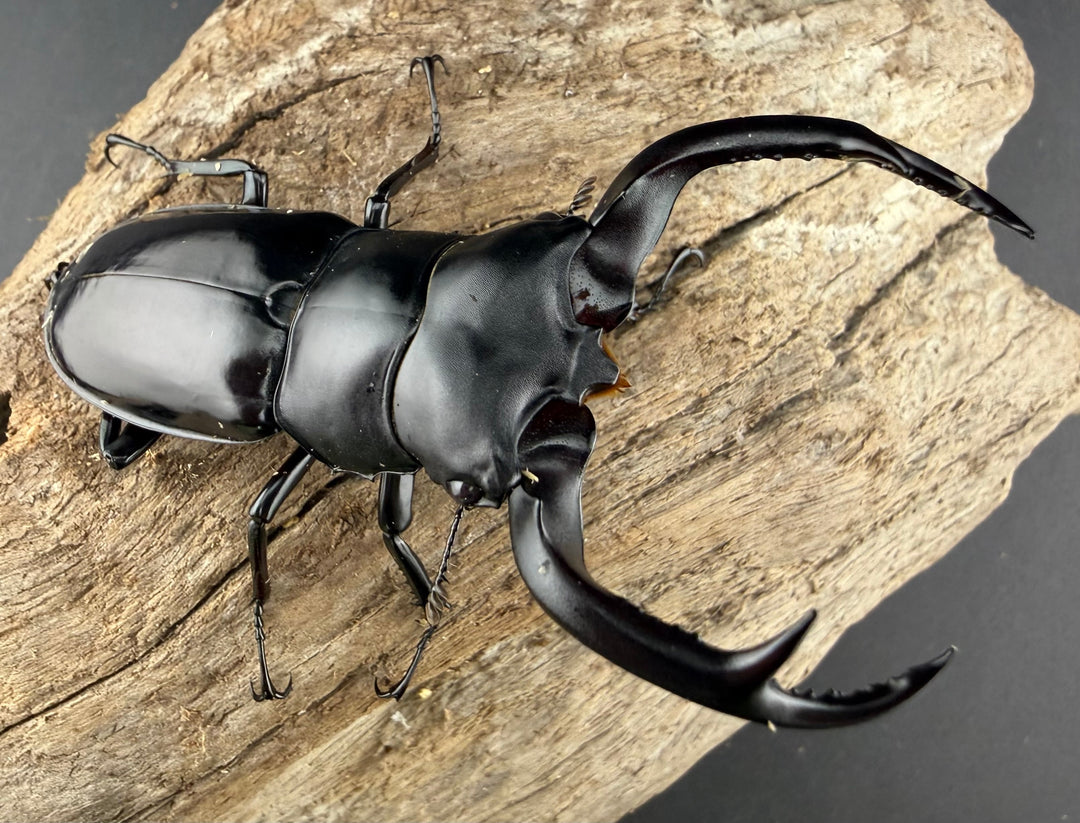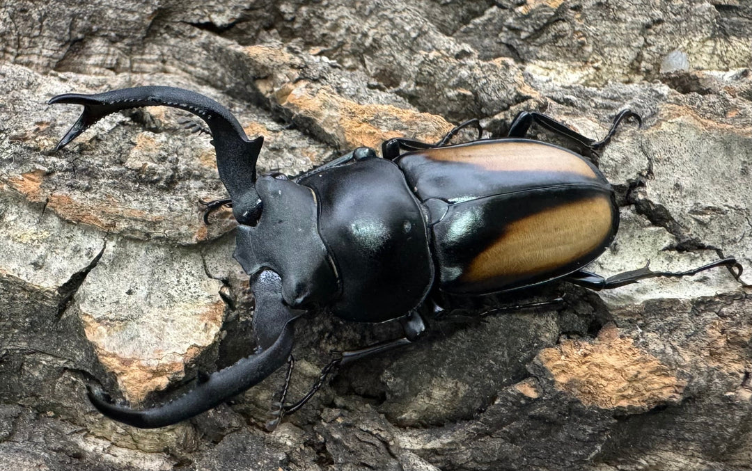 鹿の角のような大顎が特徴的な中型クワガタ。美しい光沢と独特のフォルムが人気です。南方系の種類も多く、観賞性の高いグループです。初心者から本格派までおすすめです。