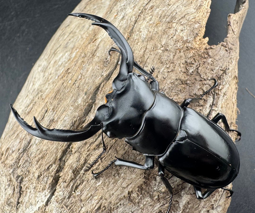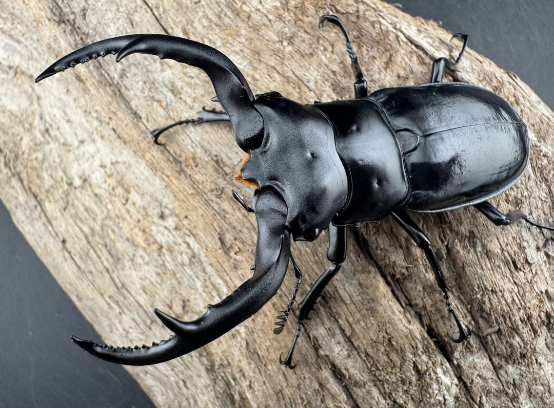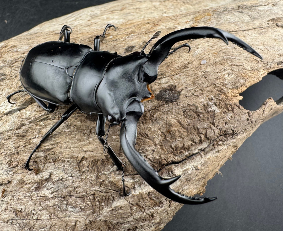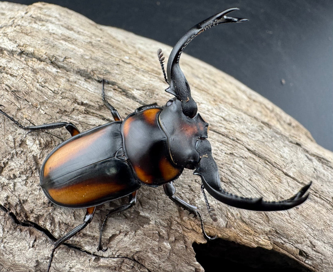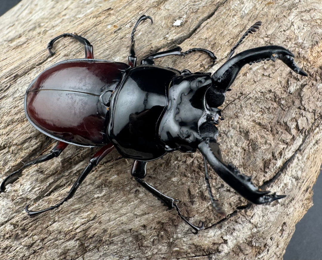 鹿の角のような大顎が特徴的な中型クワガタ。美しい光沢と独特のフォルムが人気です。南方系の種類も多く、観賞性の高いグループです。初心者から本格派までおすすめです。