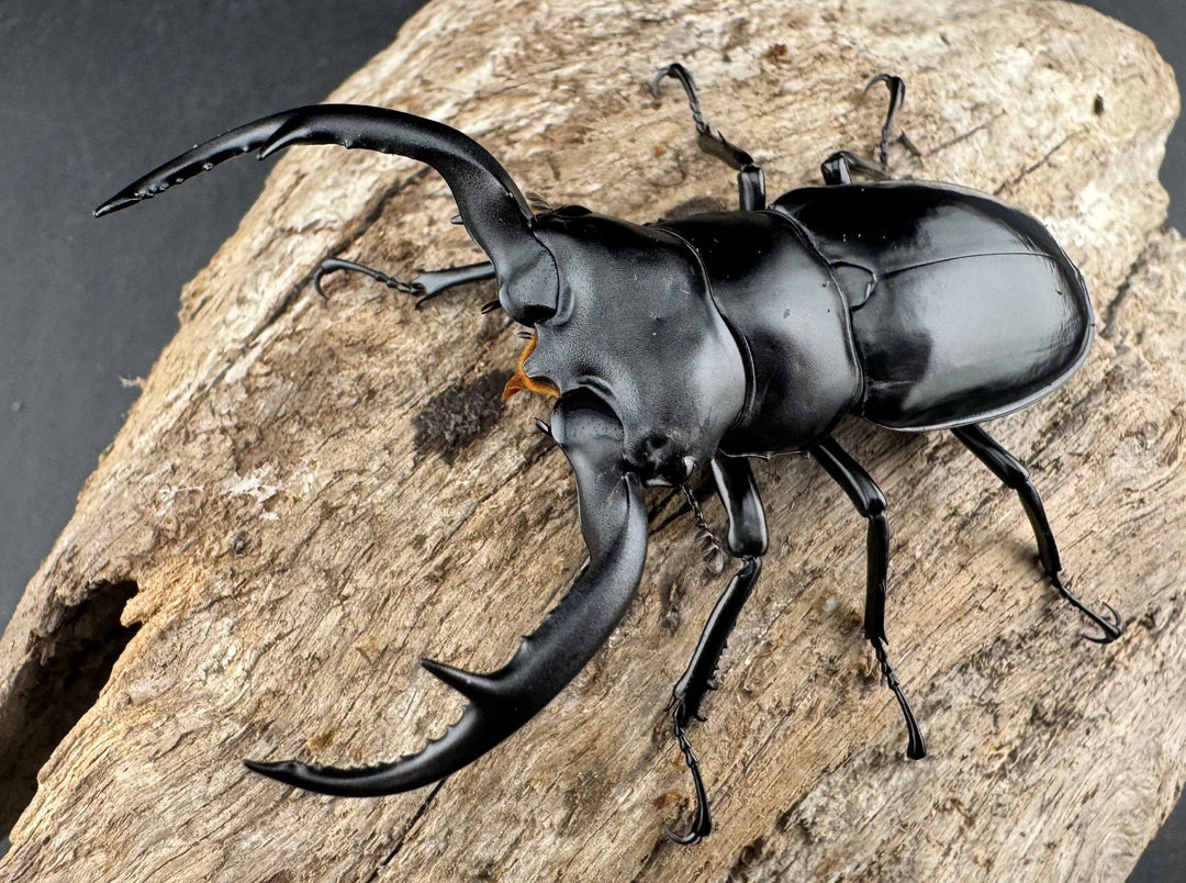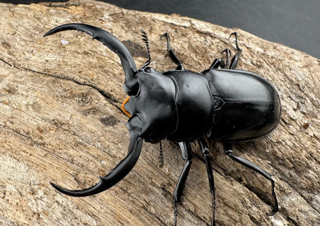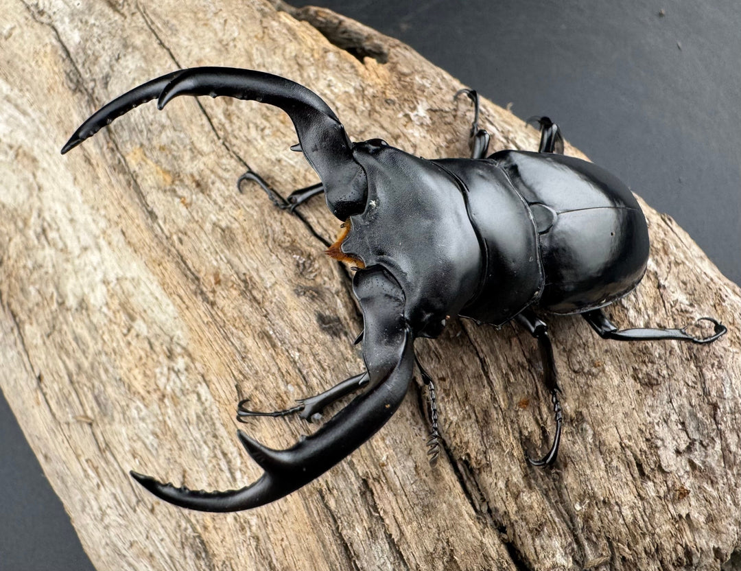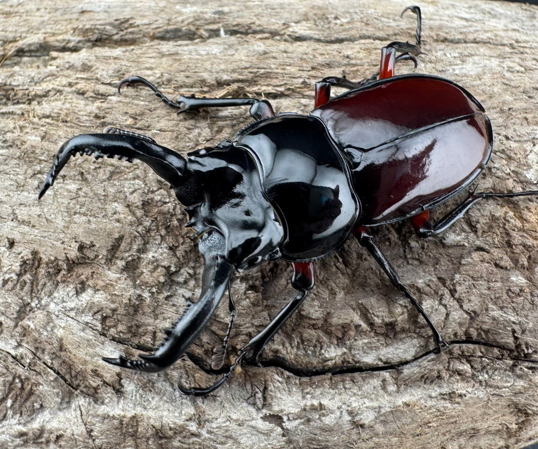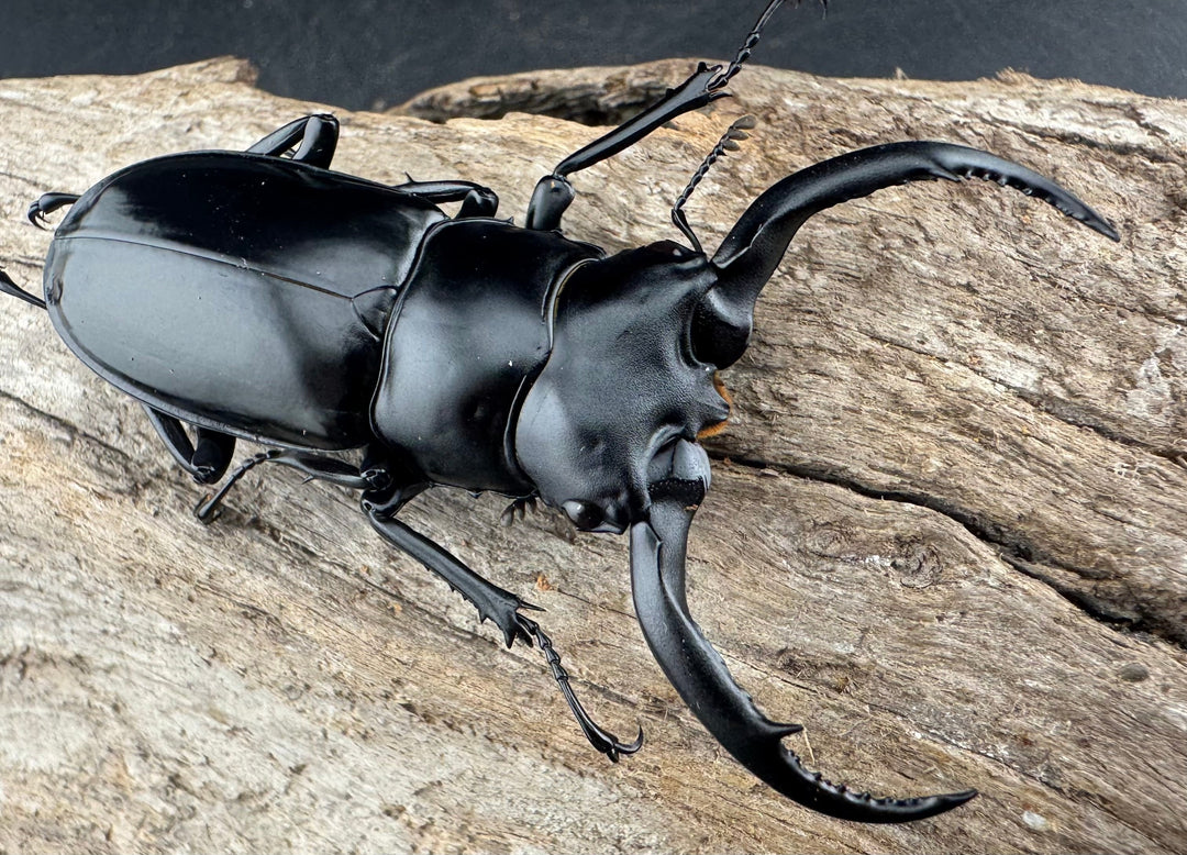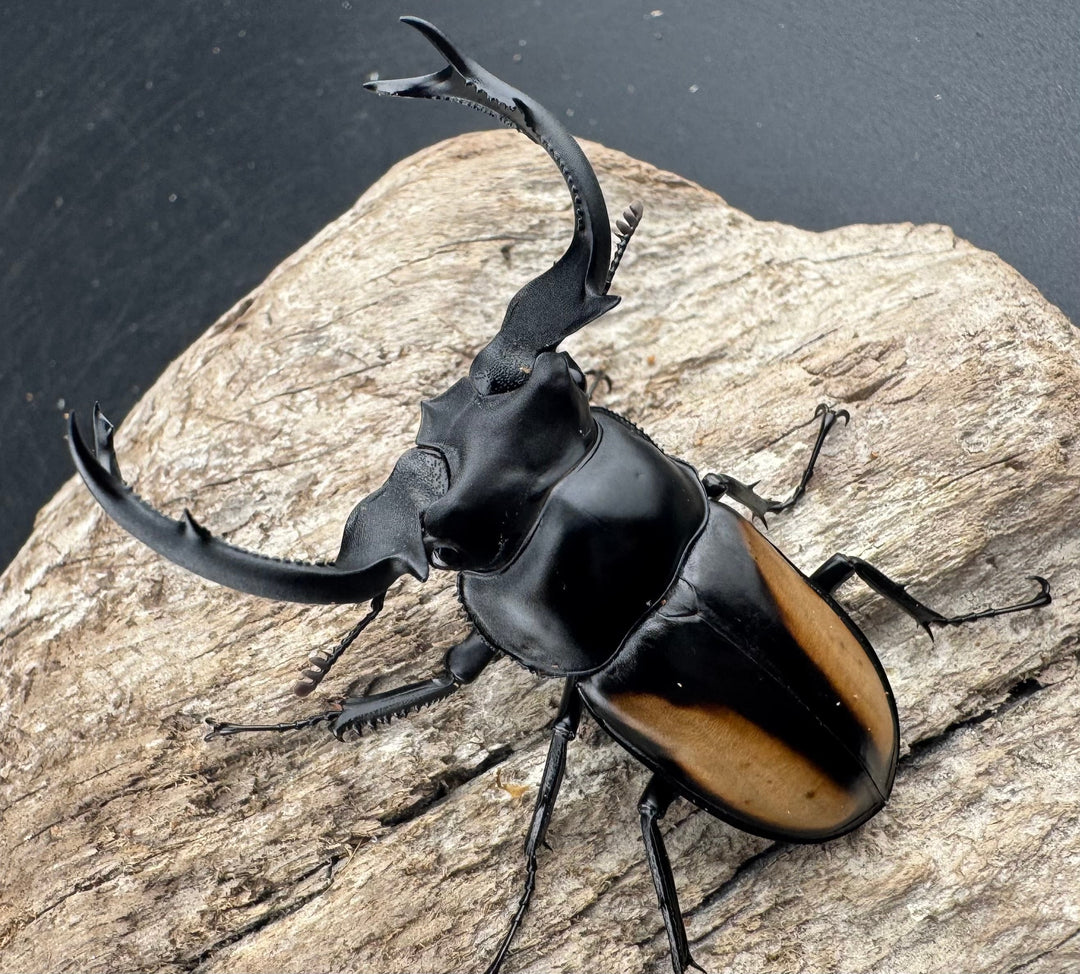鹿の角のような大顎が特徴的な中型クワガタ。美しい光沢と独特のフォルムが人気です。南方系の種類も多く、観賞性の高いグループです。初心者から本格派までおすすめです。